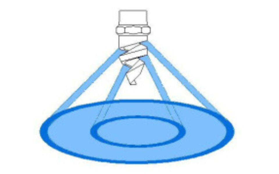 Стандартные спиральные форсунки — это полноконусные форсунки. Они имеют факел распыла в виде заполненного конуса. То есть при своей работе они должны орошать всю внутреннюю площадь окружности. Исходя из принципов распыления, полноконусные форсунки должны максимально равномерно орошать каждую точку на поверхности внутри окружности. Но, к сожалению, в случае со спиральными форсунками, это не так. Неравномерность распределения жидкости может приводить к серьезным проблемам, нарушению технологии.